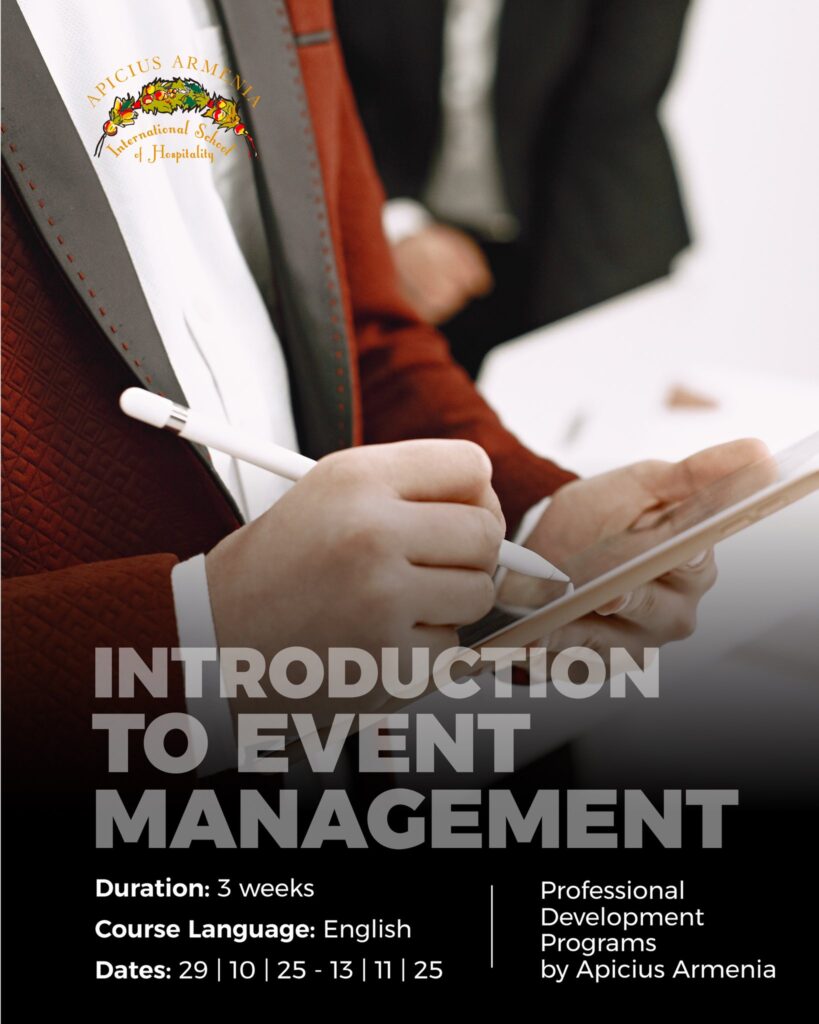Apicius Armenia Հյուրընկալության Միջազգային Դպրոցը հայտարարում է ինտենսիվ, միջազգային հավաստագիր ունեցող դասընթացների մեկնարկի մասին՝ հնարավորություն ընձեռելով տեղական մասնագետներին ծանոթանալու եվրոպական փորձի լավագույն ձևաչափին։