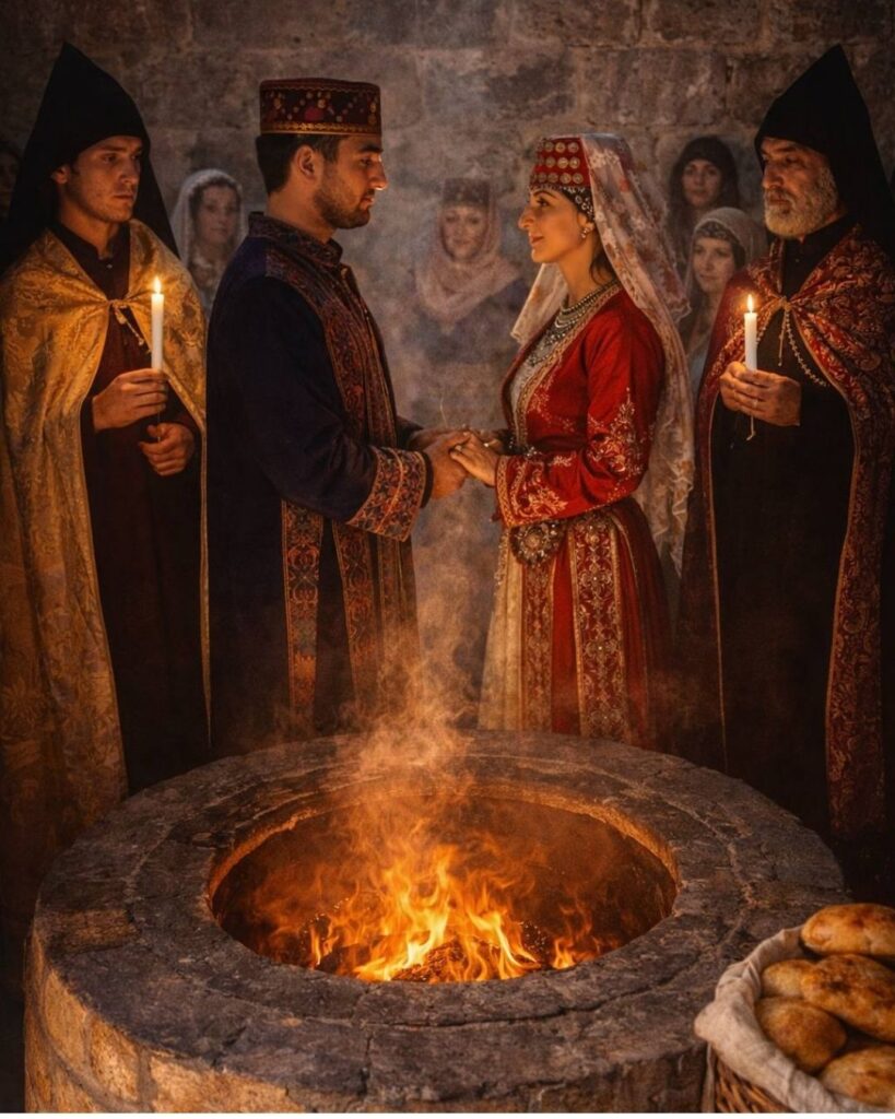 Այս իմաստային շերտն ավելի է խորանում, երբ հիշում ենք, որ թոնրի շուրջ կատարվել են նաև ծիսական գործողություններ։ Որոշ գյուղերում, որտեղ եկեղեցի չի եղել, մարդիկ իրենց պսակադրության ծեսը անցկացրել են թոնրի շուրջ՝ այն ընկալելով որպես սուրբ կենտրոնի փոխարինող։ Սա շատ կարևոր փաստ է, որովհետև ցույց է տալիս, թե որքան անբաժան էին կենցաղն ու սրբությունը հայկական միջավայրում։ Թոնիրը այստեղ ընտանեկան կյանքի օրինականացման, օրհնության ու միավորման վայր է։